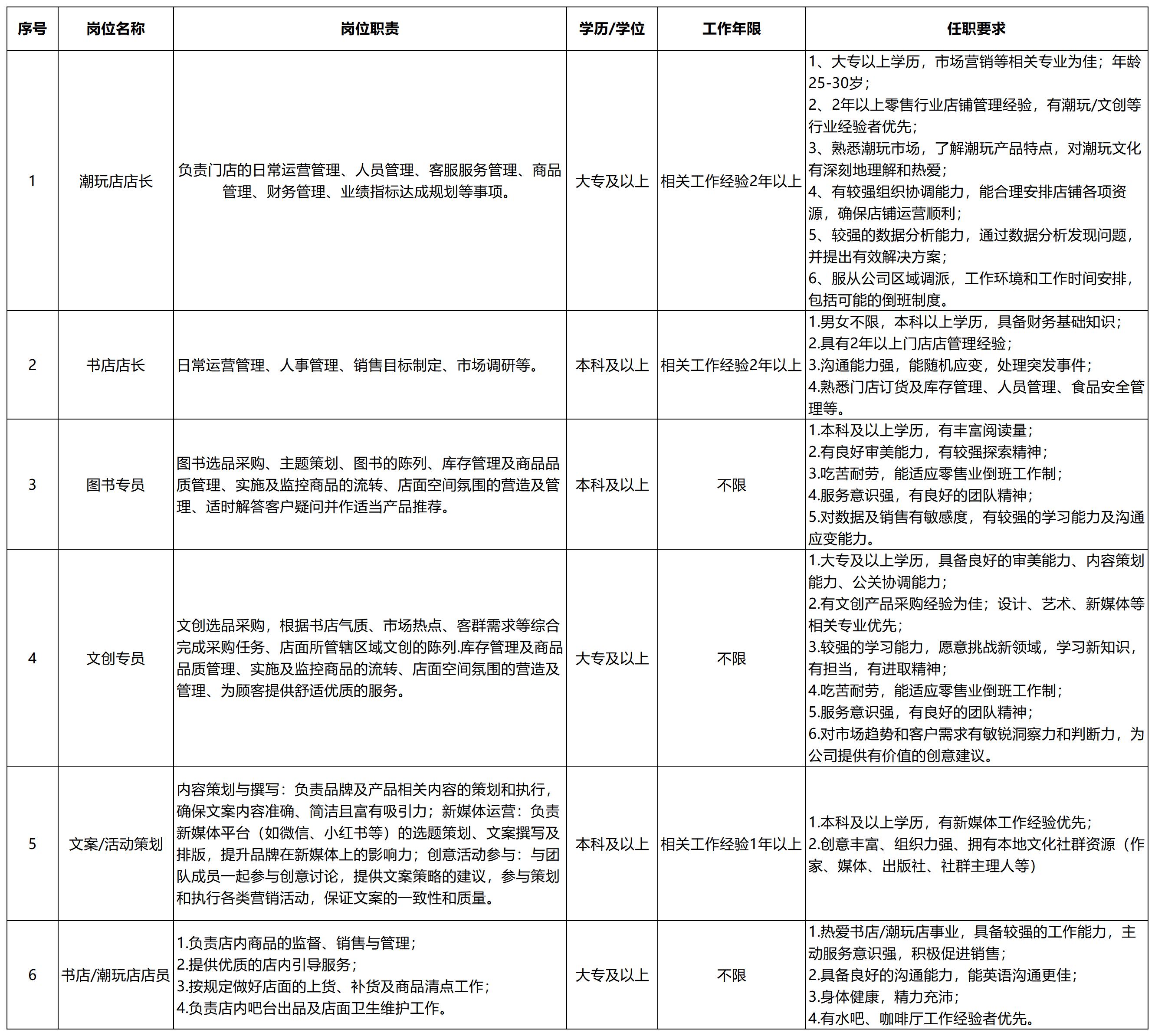 一、岗位及要求