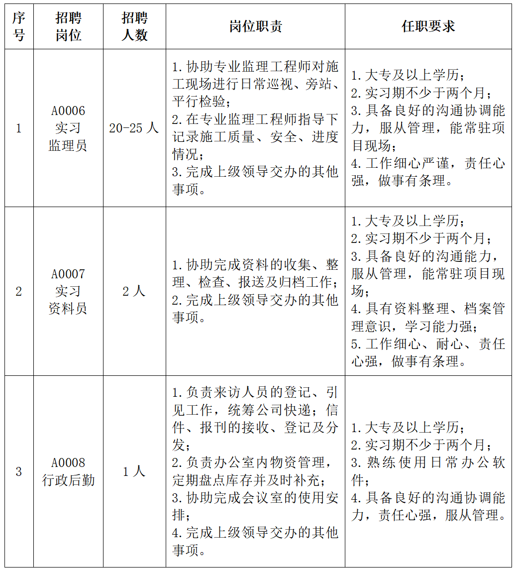 报名资料提交后,将综合考虑报名人员的岗位匹配度、学历层次等情况进行择优筛选,简历筛选通过的报名人员进入后续环节,具体时间安排另行通知。